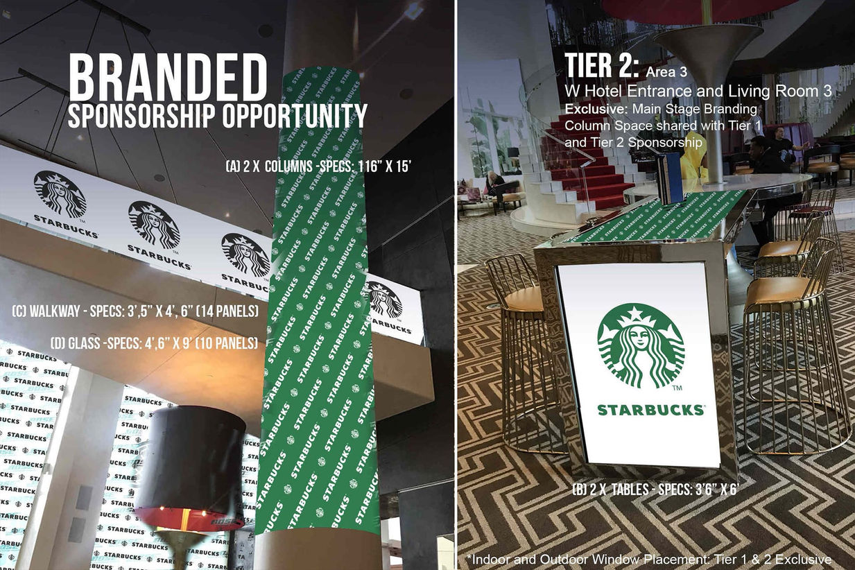 This deck includes the event overview and value proposition, as well as an outline of the sponsor tiers. Many of these were made featuring different top tier brands that were being pitched to. This deck specifically was submitted to starbucks.